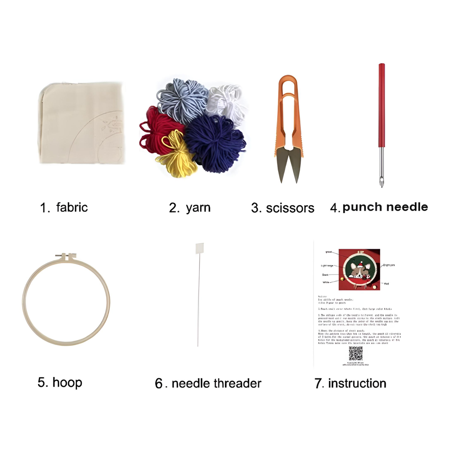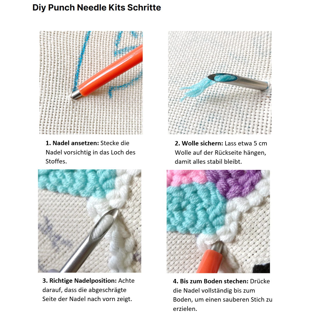 Komplett-Set: Bedruckte Leinwand, Garn, Schere, Punch Needle, Rahmen, Einfädler & Anleitung